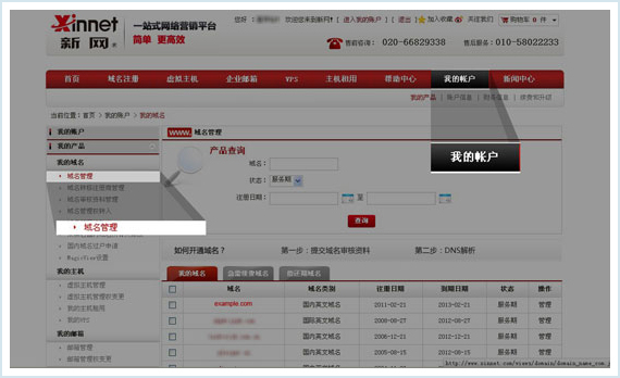 进入我的帐户后,点击“域名管理”: